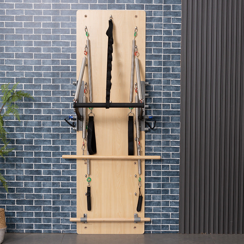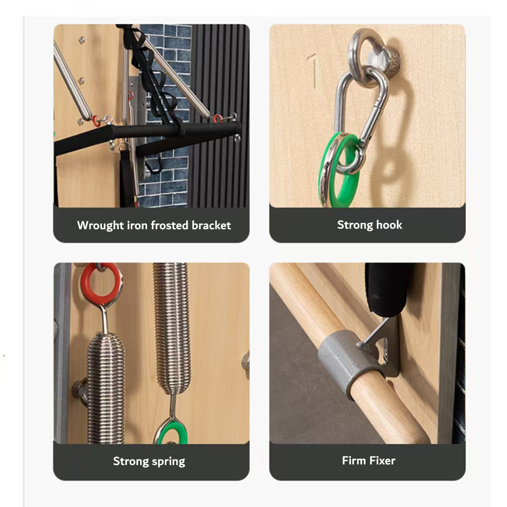 - Compact Pilates Equipment: Because this resistance kit is bolted to the wall, it retains the functionality of a Cadillac bed while saving space, making it an ideal addition to a gym, home gym, or yoga studio