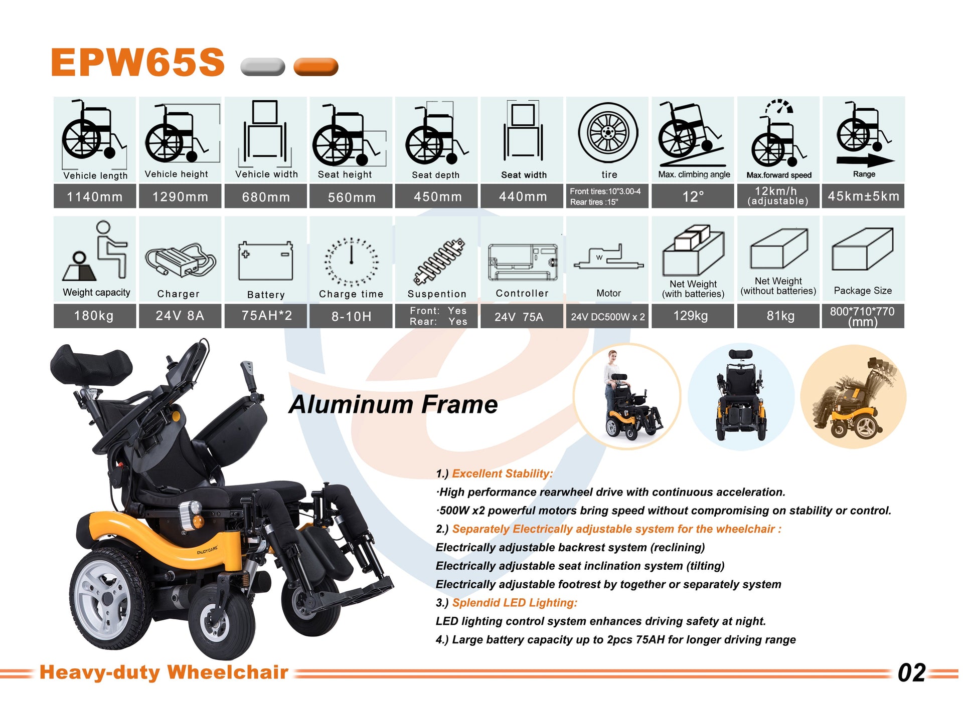 - Net Weight: 81kg / 178 lbs (without batteries)