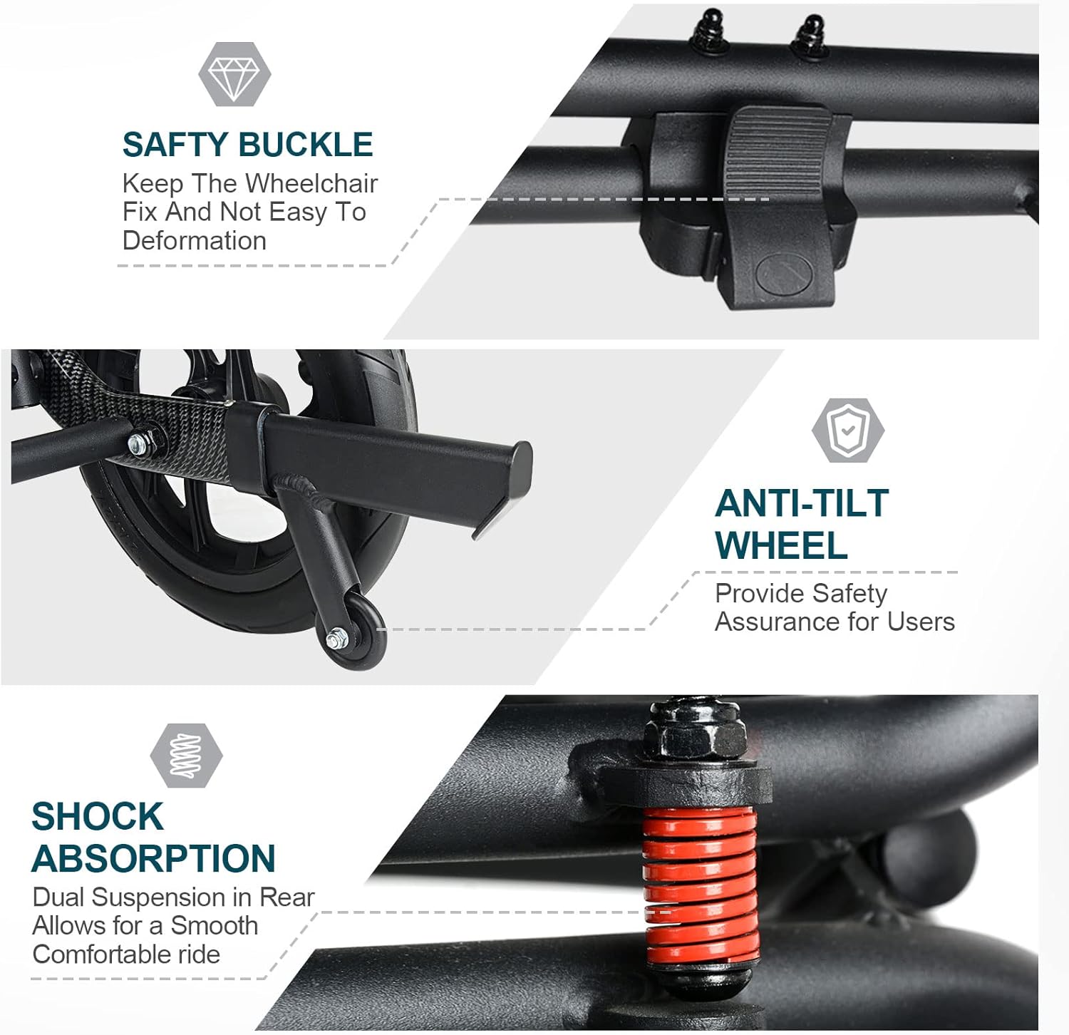 Lightweight Aluminum Manual Reclining Travel Wheelchair for Adults & Seniors 220lbs Capacity Folding Transit Wheelchair