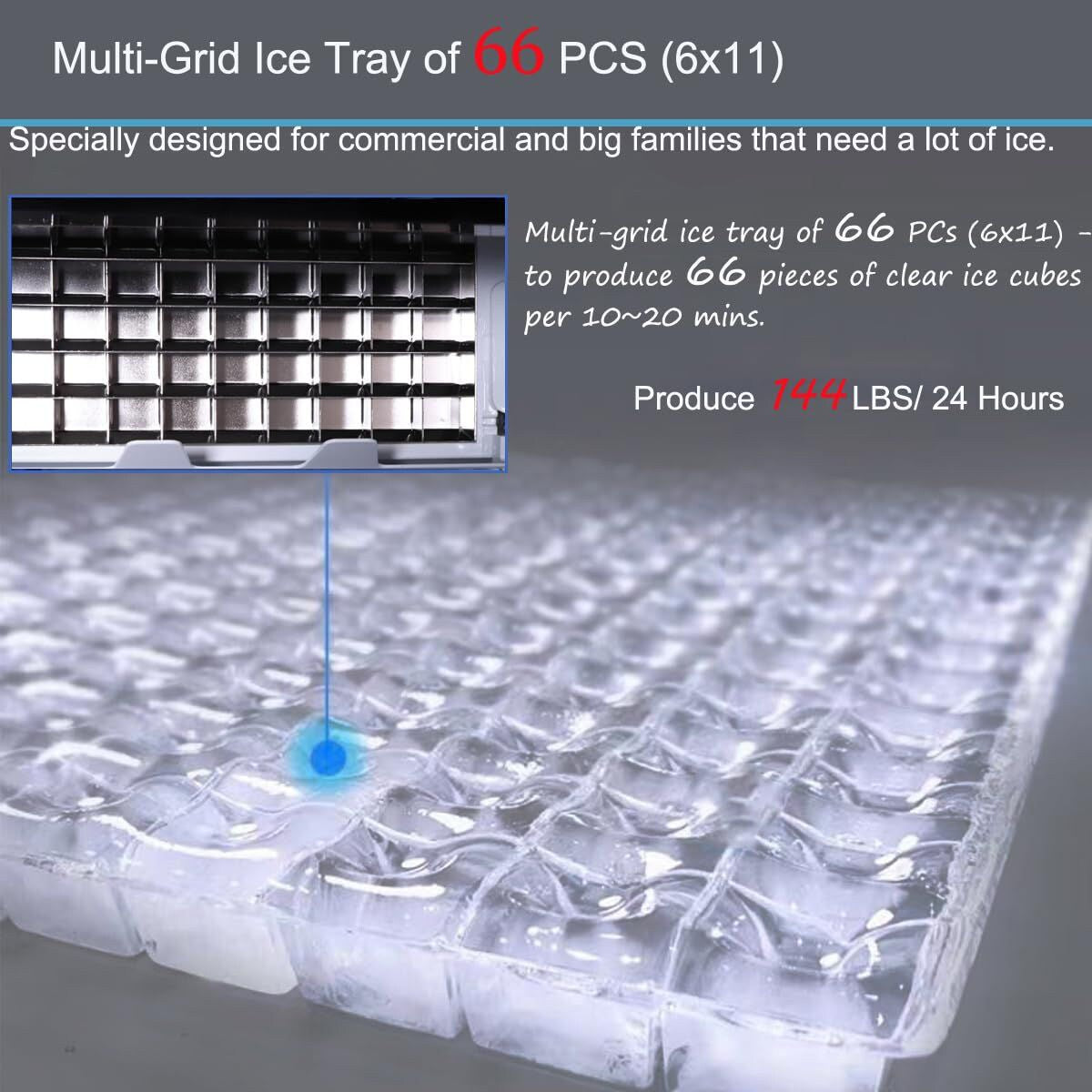 High Capacity: Produces a substantial 144LBS of ice in 24 hours, making it ideal for commercial and large family use.